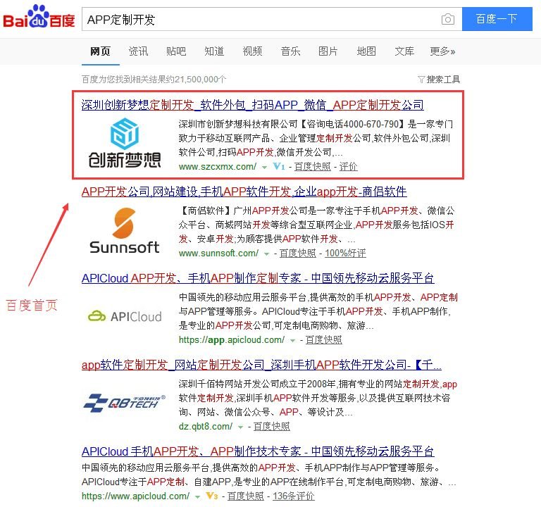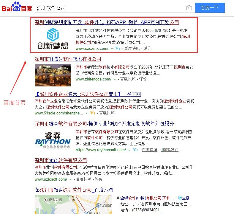 同行軟件公司也委托我們操作優化,效果顯著! 定制開發公司----百度首頁第一 掃碼APP開發----百度首頁第一 APP定制開發----百度首頁第一 深圳軟件開發----百度首頁 深圳微信開發----百度首頁 深圳接碼平臺----百度首頁 微信開發公司----百度首頁 深圳軟件公司----百度首頁 公司名稱:深圳市創新夢想科技有限公司