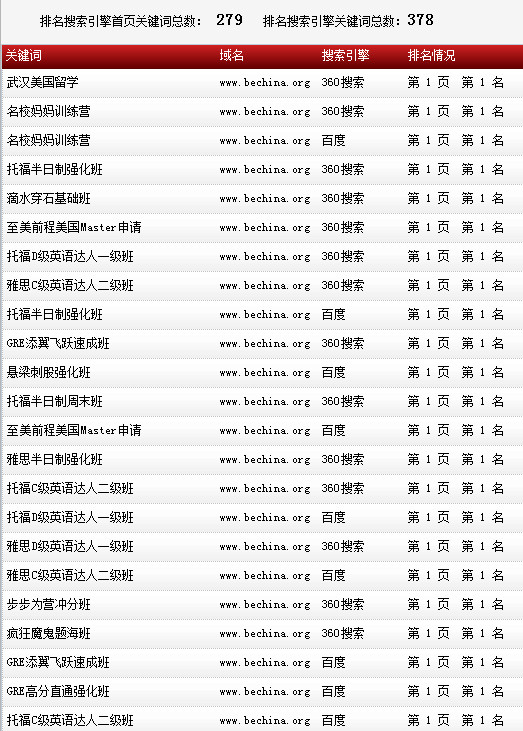 關鍵詞在各大搜索引擎排名情況:
