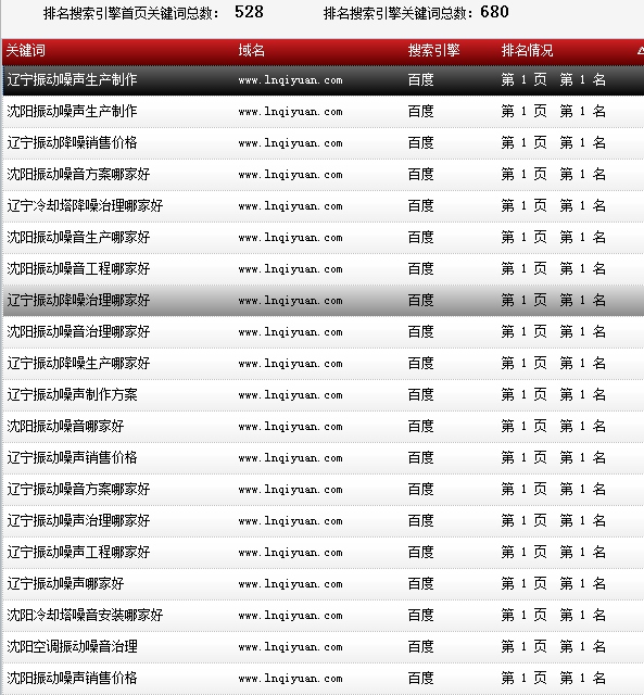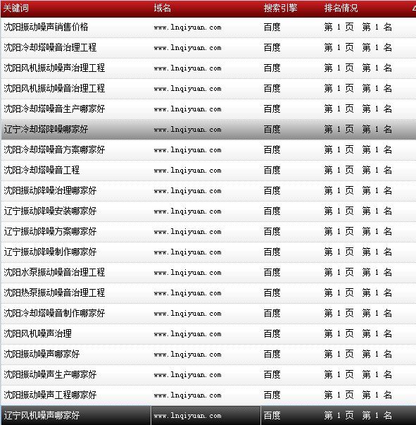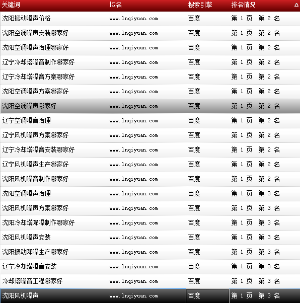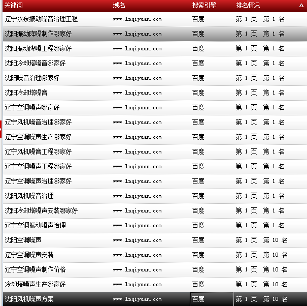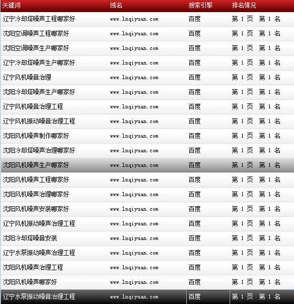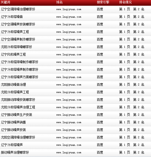 關鍵詞“沈陽噪聲治理”百度排名:首頁第一名: