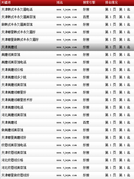 關鍵詞“天津美瞳線”在百度首頁第一名!