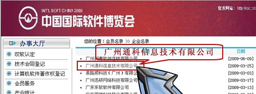 您可以進(jìn)入“廣州市軟件行業(yè)協(xié)會”網(wǎng)站: http://www.gzsa.org,點(diǎn)擊“會員名錄”,進(jìn)入“ http://www.gzsa.org:81/membership.do?mhd=toListInWeb2&sortNum1=0601”,可以非常清楚的看到“廣州通科信息技術(shù)有限公司 ”的有關(guān)信息。